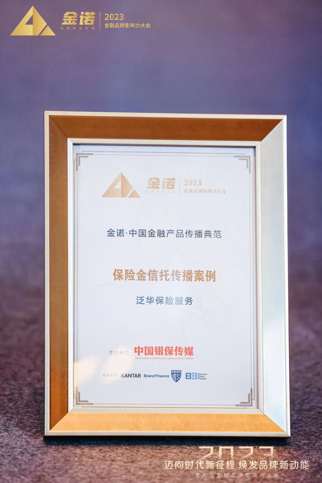 泛华保险金信托传播案例获评金诺·中国金融品牌传播典范