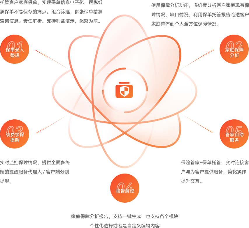依托强大的线上保单托管系统,可对客户家庭的保单进行电子化、系统化管理,并为客户提供
