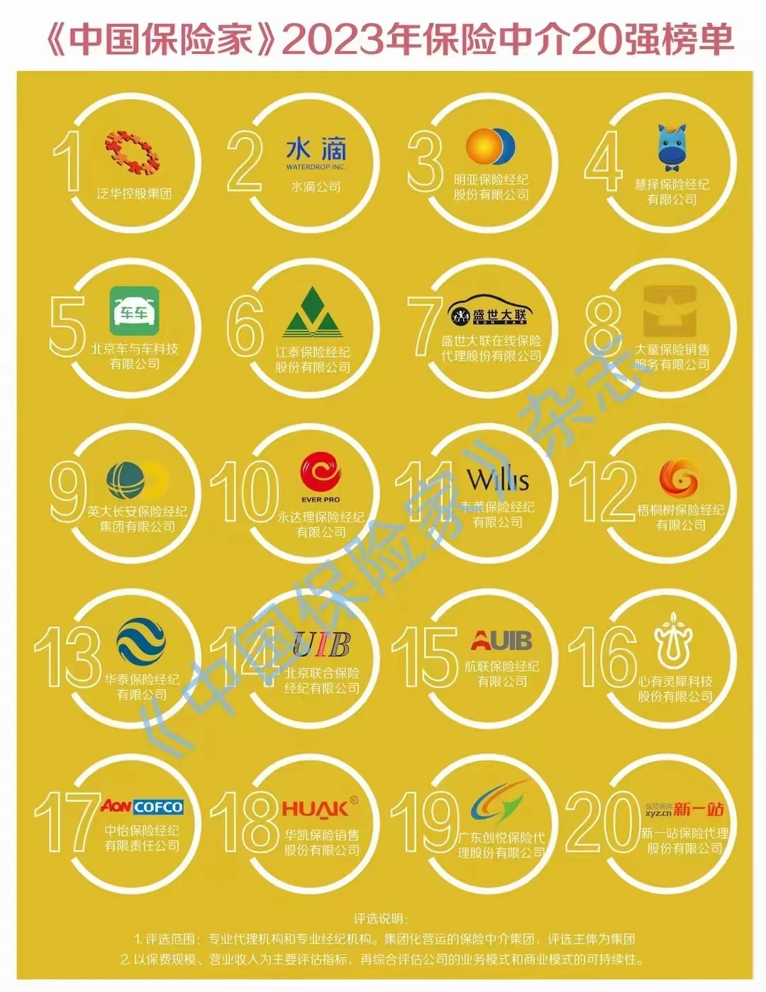 近日,由国家高端智库、国务院直属机构综合开发研究院(中国·深圳)主办,深国资控股的《中国保险家》杂志公布2023年保险中介20强。泛华凭借在保险中介领域的经营规模、服务能力及综合实力,荣登榜首。