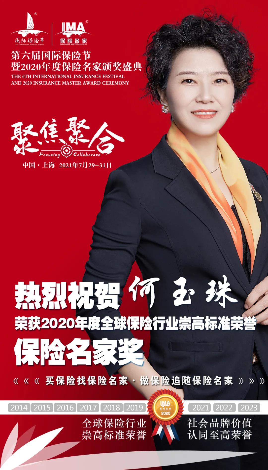 泛华北京分公司2019年、2020年度销售冠军,高峰会会长;泛华名人堂会员;从业以来持续全球百万圆桌会员MDRT/COT;上海国际保险节“保险名家”获得者;LIMRA国际保险品质奖(IQA)获得者;国际华人保险大会龙奖获得者;中华遗嘱库义工大奖获得者;