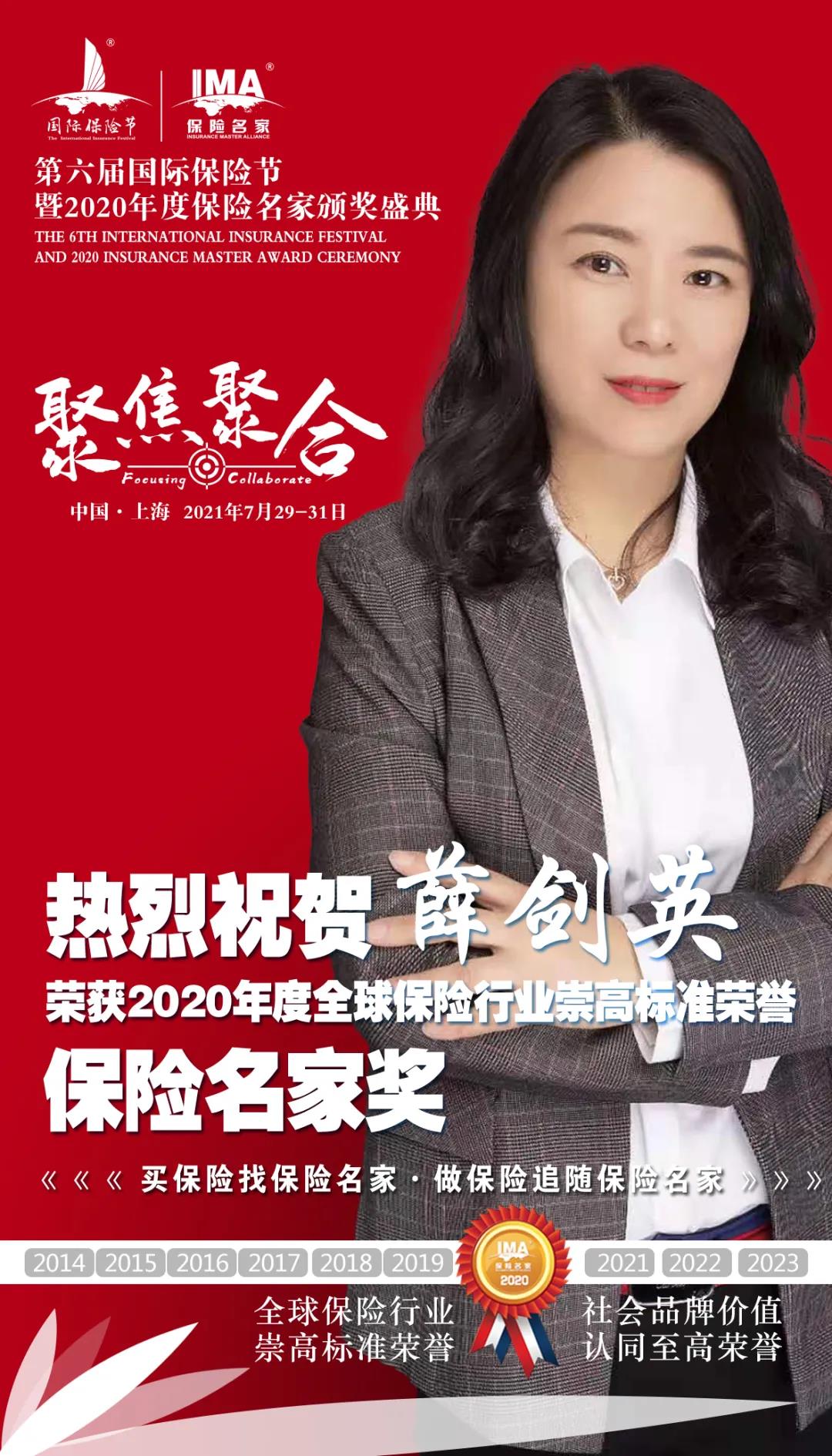 2007年加入中国平安,多届江苏省高峰会会长,钻石年会会长,集团公司长期功勋荣誉奖,连续MDRT,COT,TOT;2017年加入江苏泛华,当年达成五级创业团队长;2019年个人业绩集团第二名,团队入围梦之队;2021年开门红,个人业绩获得集团第二名,团队获得集团第四名。