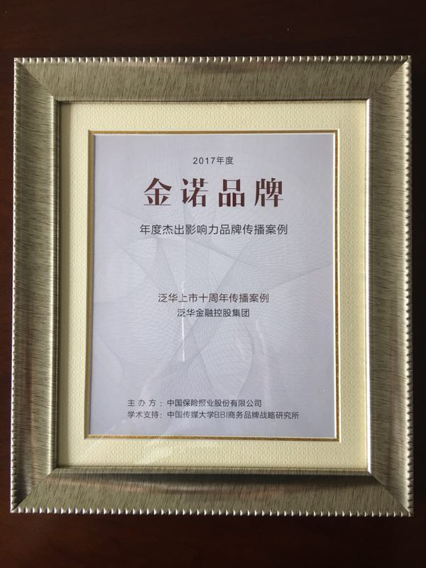 2018年5月9日下午,第二届中国保险品牌影响力论坛在京举行,论坛现场揭晓了2017年度金诺品牌奖名单,泛华金融控股集团凭借“泛华上市十周年传播案例”荣获“2017年度金诺品牌年度杰出影响力品牌传播案例”奖。金诺奖作为保险领域最具影响力的行业奖项,由《中国保险报》发起,并由中国传媒大学BBI商务品牌战略研究所提供独家学术支持。这次论坛上,有来自业内外100余位品牌管理专家,分享如何根据品牌定位、传播策略等因素确定符合企业和行业品牌发展方向的经验。