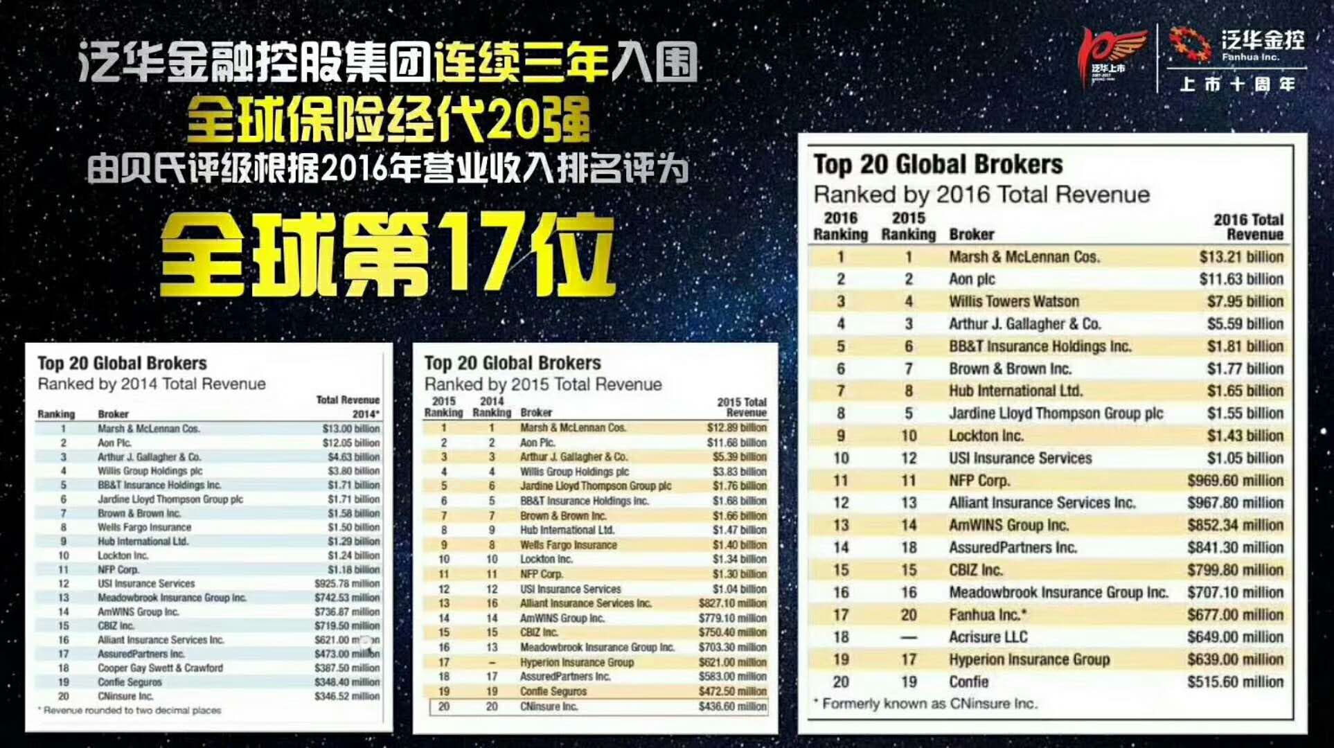 继2015、2016年后,2017年泛华金控第三年获得该项殊荣,年度排名相比去年上升至第17位 。