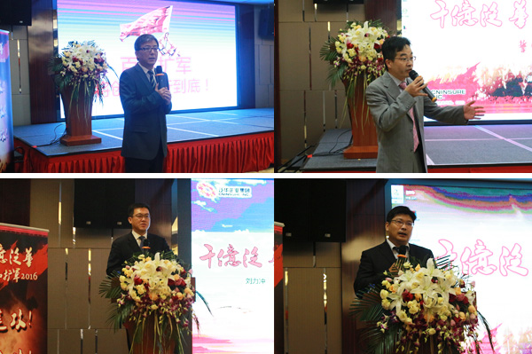 誓师大会期间,各省机构负责人还纷纷就当地亮点成绩进行了经验分享。山东分公司总经理任勇对聊城、烟台、济南等地区公司发展特色深入分析,强调了说话之道、上下同欲、格局与愿景等方面的重要性;广东南枫分公司总经理刘耀东阐述了建立督导体系推动全金融转型的必要性,并提出了“保险创客梦,泛华万家店”的万店宣导主题;四川分公司平台培训总监钟毅则以成都市区产险发展为脉络,述求全面金融业务拓展;陕西分公司副总经理杨华围绕掌中保,点出人力增员加速的秘诀;安徽分公司总经理李雪山分享了近期筹备平台工作。