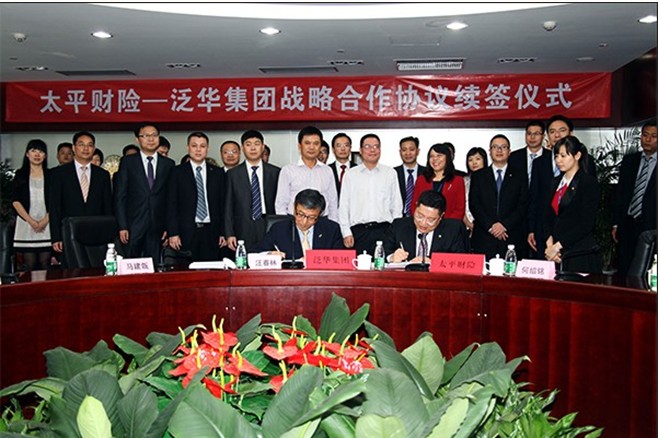 2013年3月18日,太平财产保险有限公司(简称太平财险)与泛华保险销售服务集团(简称泛华集团)成功续签战略合作协议。太平财险总经理陈锦魁、副总经理何绍铭、副总经理安猛和泛华集团CEO汪春林、泛华财险总裁马建瓴、泛华保网首席运营官赖伟等有关领导出席了签约仪式。