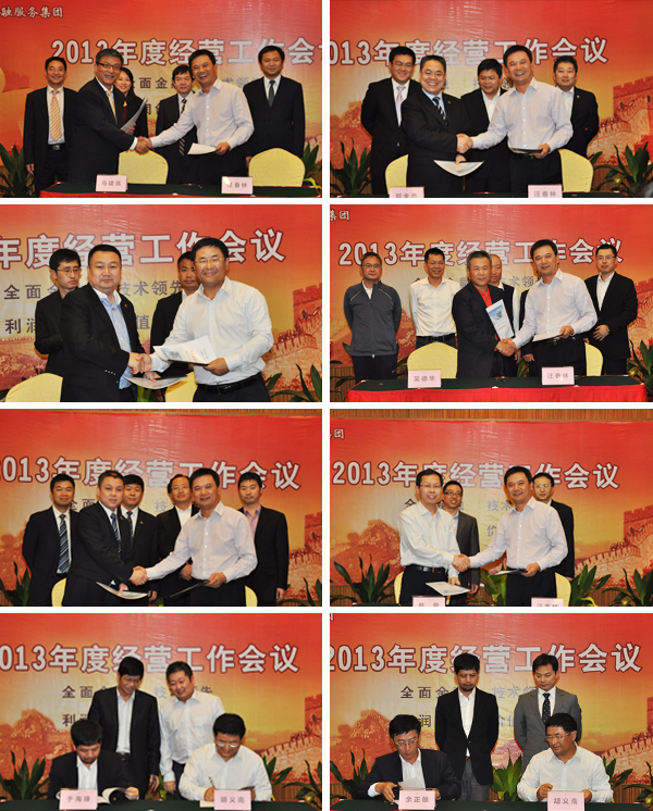 随后,会议现场举行了庄严的“2013年度经营责任状”签订仪式。胡董和汪总分别与各营业集团总裁签订了2013年度经营责任状。