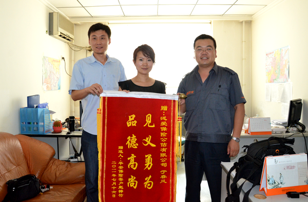 最后,赵女士她才决定做面锦旗送到平安保险公司来,想通过平安公司找到那个叫于春风的小伙子,表示感谢。她说:泛华应叫泛爱才对!在急难关头挺身而出,见义勇为、不畏危险,这是人间的大爱!