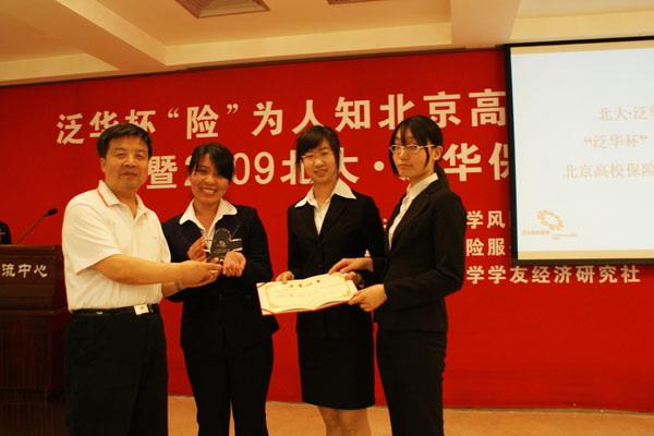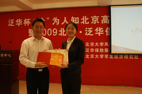 泛华集团葛蓬副总裁为北京大学保险•梦之队颁发一等奖