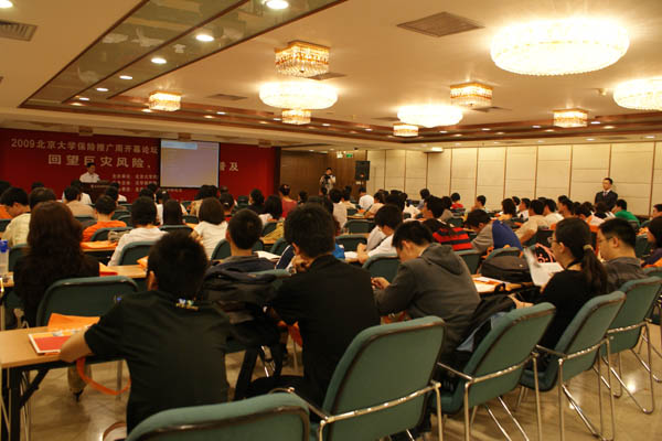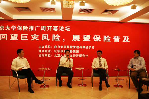 此次保险推广周是继2008年5月泛华集团与北京大学合办的又一届推广周活动。2009年推广周将从5月4日一直持续到5月10日,包括主题论坛、北京高校保险知识竞赛、雪灾地震橱窗展等。其中作为开幕活动的主题论坛于5月4日晚在北京大学英杰交流中心新闻发布厅举行。北京大学经济学院风险管理与保险学系郑伟副教授出席论坛,并作了题为“地震保险:国际经验与中国思路”的主题演讲;泛华保险服务集团首席运营官兼首席信息官金锋副总裁、中英人寿保险有限公司游育进副总裁、中国保险报于华总编应邀出席了论坛,并参加了主题论坛的圆桌讨论。