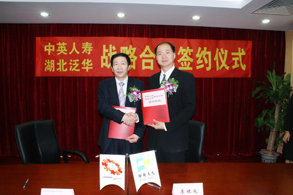 湖北泛华东方世纪保险代理有限公司刘泽成总经理、中英人寿湖北分公司李建成总经理代表签字