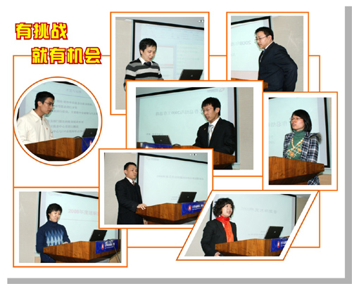 面对成绩,主管副总裁金锋指出,2008年已经过去,泛华集团仍然处于方兴未艾的阶段,作为开拓者,仍面临着诸多困难和挑战。面对一张张年轻的面孔,金总指出,部门负责人一定要继续加强组织能力建设和团队建设,增强协同合作的能力,并要勇于承担责任,“想事情,干事情,并干成事情”,为机构发展着想,为机构的需求着想。而对于还在发展中的部门员工,金总则表示,每个人无论岗位大小,都要勤勉尽责,并志存高远,泛华的舞台永远都会留给努力的人。