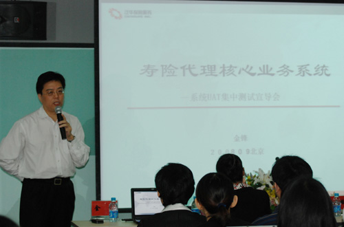 泛华信息管理中心消息,目前泛华代理核心业务系统已经进入到了系统上线前的最后一个,也是该项目最关键的阶段——核心业务系统UAT测试阶段。据了解,泛华保险代理核心业务系统项目从2008年2月19日正式启动,历时近8个月,经过了前期需求分析、需求确认、系统设计、程序开发、业务集成测试等多个环节,投入了大量的资源,得到了总裁室和各职能部门地高度重视。