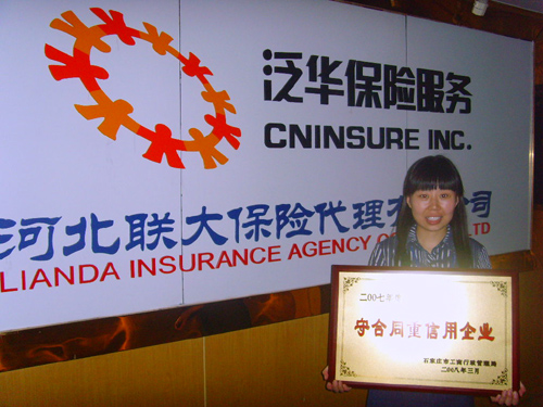 日前,石家庄市工商局领导在召开的“守合同重信用”企业大会上,向泛华旗下河北联大保险代理有限公司颁发了“守合同重信用”单位牌匾和相关证书。据悉,河北联大是河北省首家获此殊荣的车险代理公司。 河北联大荣获“守合同重信用”企业称号 能够获得此殊荣,是河北联大长期守信经营,精心打造诚信企业的结果,河北联大负责人表示,河北联大自2007年9月成立以来共出单7千余件,保费突破千万大关。河北联大一直积极开展以守合同重信用为内容的社会主义精神文明建设活动,并大力倡导诚实守信、合法经营,大力崇尚商业信誉、弘扬讲信用的商业道德,坚决反对欺诈、不依法办事、不守信用的行为。 在当地政府的领导下河北联大坚持依法经营,争做守法经营的先行者。良好的信誉,使河北联大赢得了社会的广泛认同,也提升了企业竞争力。河北联大负责人表示将继续团结全体联大员工,为打造诚信企业,,为共同营造全社会诚实守信的良好氛围而努力。 河北联大孙海洋22日报道