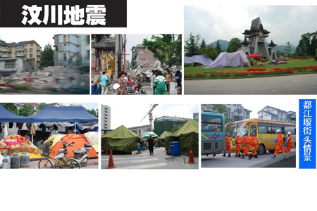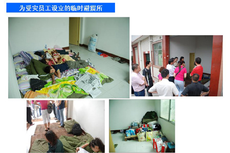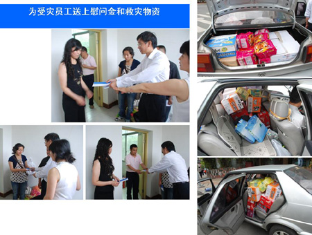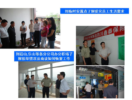 中午会议结束,下午1点,四川总经理室人员陪同李总一行人直奔都江堰。原本只需要1个小时的路程,由于受到灾情影响,主要交通要道都实行了交通管制,李总一行人只能绕道而行,一路颠簸行驶了近3个小时,终于在下午4点到达都江堰。来不及休息,李总一行直赴都江堰职场详细了解其损失状况及员工房屋的受损情况。