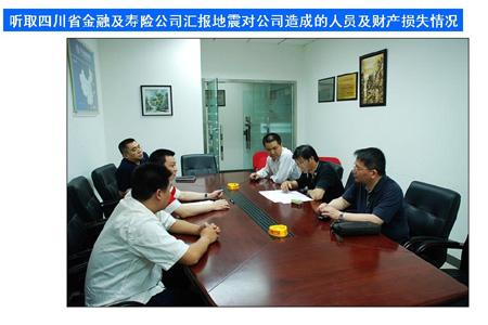5月16日,泛华保险服务集团副总裁李成斌亲赴四川看望泛华伙伴。受到灾情影响,机场航班延误,早上7点的飞机直到晚上7点后才起飞,晚22点李总一行到达成都。李总抵达成都后不顾旅途劳累,携同四川泛华鑫泰总经理何培荣、副总经理罗心荣首先看望了泛华金融集团旗下的四川金融公司,李总代表集团总裁室全体成员,向各位伙伴及家人表示了亲切慰问。随后,四川泛华鑫泰的汇报工作一直持续到凌晨3点。李总听取了四川泛华鑫泰灾情发生后的情况,同四川泛华鑫泰总经理室人员一起制定了下一步的救灾应急方案。