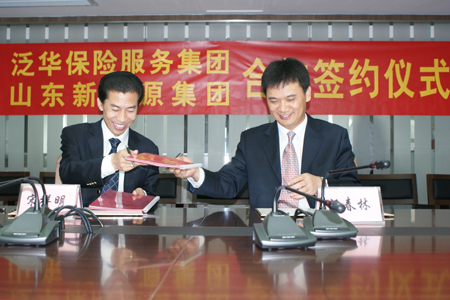 4月29日,泛华保险服务集团与山东新广源集团在广州总部签订合约,共同出资成立山东泛华新广源保险代理有限公司。泛华集团财险事业部汪春林主席与新广源集团宋祥明董事长代表签字,泛华集团董事长胡义南、总裁赖秋萍出席了签约仪式。新成立的山东泛华新广源将在山东境内(青岛除外)开展车险业务。这种资本层面的合作方式,将充分发挥专业保险代理及车行销售渠道的核心优势,实现双方资源共享,做大做强,从而促使车险销售的规模化发展。