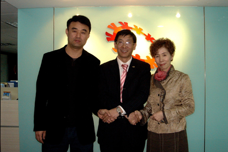 泛华寿险副主席李成斌与辽宁阁纳吴辉女士(右一)、刘军先生(左一)协议签定后合影