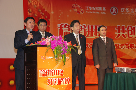 2008年2月22日,以“稳健进取,共创辉煌”为主题,泛华保险服务集团联合兄弟公司泛华金融服务集团一起举办的2007年度大型表彰暨元宵联欢晚会,在南海祈福仙湖度假村酒店隆重举行。来自广东地区泛华旗下9家保险服务机构和5家金融服务机构的1000多人在国际宴会厅喜庆洋洋的参加了此次晚会,共同渡过了温馨愉悦祥和的夜晚。泛华董事长在晚会开幕上进行了题为的热情致辞。泛华两大集团总裁室成员在晚会上集体亮相,泛华总裁赖秋萍隆重介绍了新加入的保险集团总裁室成员和金融集团总裁室成员。