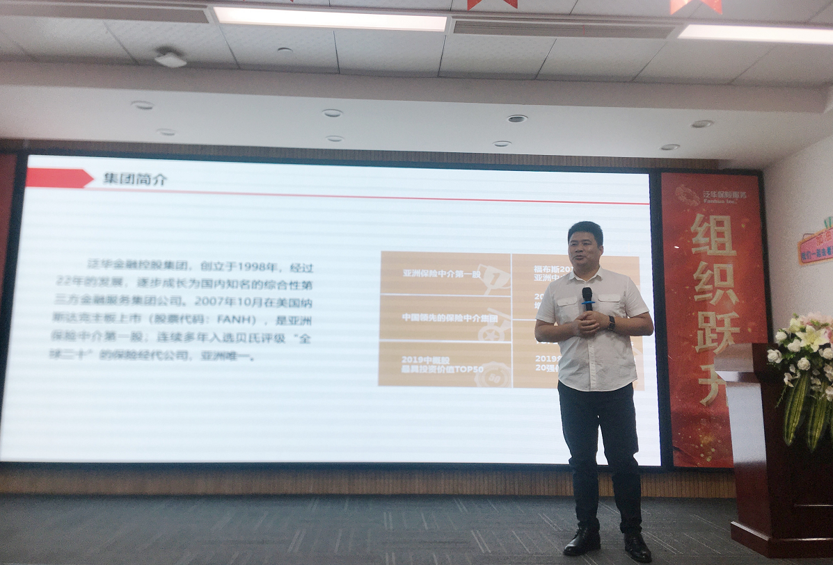 湖北泛华总经理徐昭强致欢迎辞并作泛华金融控股集团介绍。他表示泛华旗下有泛华保险销售集团服务、泛华数字集团、泛华公估、泛华云服等企业,以及行业领先的保险一站式平台“懒掌柜”、代理人销售工具“FUN掌柜”、行业SaaS服务平台“泛华云服”、互联网保险平台“保网”、网络互助“e互助”等科技平台。当前,泛华提出“职业化、数字化、开放平台”全新战略,实施云铜计划、榕数计划和凤凰计划。通过建立数字化生态链链接全行业,协同共生,共创共享,形成开放聚合有机体,创造1+N的能量聚变,实现让每一个中国家庭享受更美好的金融服务生活的目标。