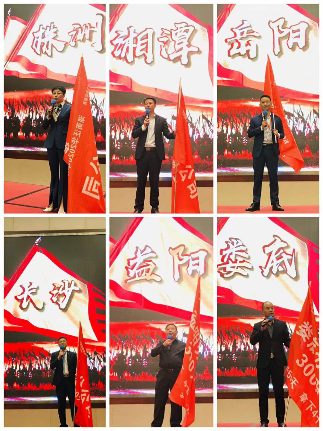 接下来在战鼓声中召开了湖南泛华2020年末会战誓师启动大会,湖南泛华总经理室为13家地市机构授予年末会战战旗。各地市负责人进行了简短而激昂的发言。“奋战五十天 拿下四千万”,年末会战一触即发。