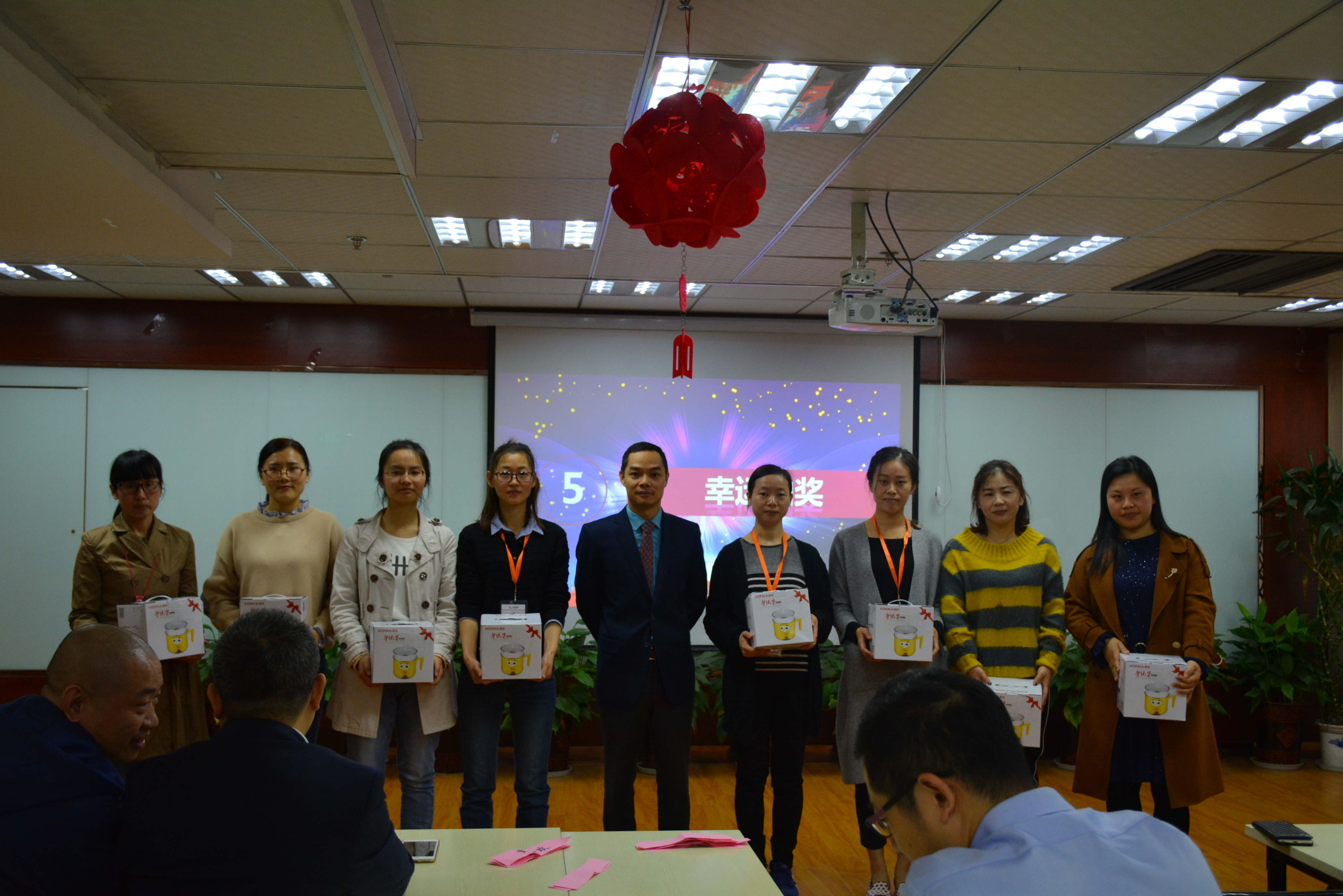 在这次会议的创业文化学习中,陈远智经理还带伙伴一起学习了集团创始人/执行董事胡义南“泛华十年讲话”精神,让江苏将士在创业的道路上更加坚定了自己的步伐!现场进行了激动人心的幸运大抽奖环节,共抽取了18位幸运伙伴,掀起了整个会议的高潮。