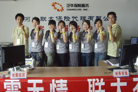 5月19日14时28分河北联大全体泛华员工默哀 这一刻,四川汶川大地震发生的同一时刻,河北联大保险代理有限公司组织全体员工及在场所有代理人齐聚业务处理中心,进行了庄严肃穆的默哀仪式。全体泛华人员神情凝重地向遇难同胞默哀3分钟。伴着窗外的鸣笛和警报声,一幕幕让人揪心的画面再次浮现眼前,每个人都为同胞遭受如此惨痛的苦难而感到万分心痛。 黄丝带“祈盼亲人平安” 默哀结束后,河北联大保险代理有限公司联合河北省红十字会开展的“出一张保单,献一份爱心”黄丝带活动正式启动。河北联大总经理刘亚红、副总经理李涛带头再次捐款,成为了河北联大在积极响应集团号召组织员工捐款之后的又一善举。 河北省红十字会在河北联大客户服务中心承保柜面设立了专用募捐箱,代理人每出一张保单或推荐一名有效会员,河北联大将为灾区捐一元钱,出单会员将获赠联大送出的象征“祈盼亲人平安”的黄丝带,并在“地震无情,联大有爱”的条幅上签下自己的名字。活动还鼓励代理人及客户直接捐款援助灾区。 “地震无情,联大有爱”签名 活动一经推出,受到了广大代理人的高度评价和大力支持,通过做好自己的本职工作为灾区献爱心成为大家的共识。仅19日当天就有28名代理人出单,累计保单60多件,不少会员还向灾区捐出了部分佣金和推荐奖。 河北联大员工纷纷表示,将以更加饱满的热情积极投入到工作中去,以实际行动支持灾区,珍惜每一天,与四川同胞一起加油! 河北联大21日孙海洋、李晶报道