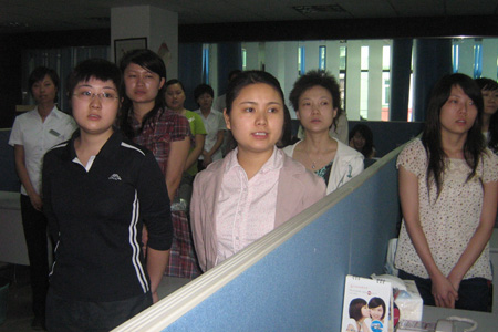 作为受灾员工的代表,一分公司二部经理刘丹宣读了此次募捐活动的倡议书,向灾区同胞表达了我们最朴实的感情和最真挚的祝福。随后,由李总启动捐款仪式,在肃静的气氛里,每个人怀着对逝者的哀悼、对生者的关爱之心将自己的心意放进了捐款箱。
