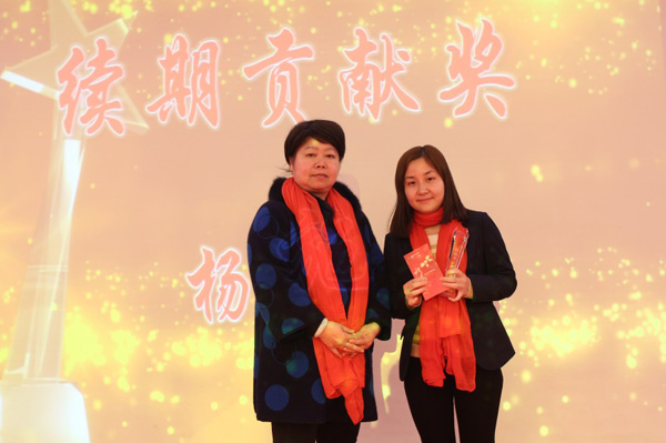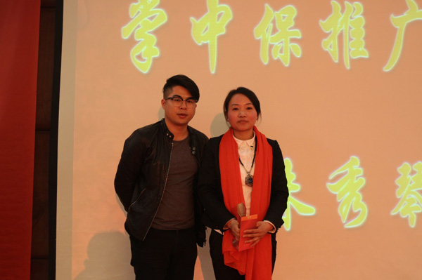 徐昭强总经理为黄桂珍伙伴(右)颁奖