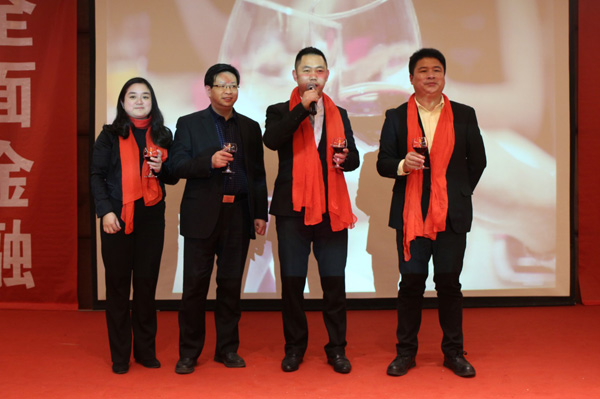 2016湖北泛华希望更多的人能在泛华实现自己的梦想,赚更多的钱,内外勤员工共舞一曲抓钱舞。接下来晚宴正式开始,感谢行业领导的鼓励、战略伙伴的支持。湖北泛华总经理室全员致祝酒词。
