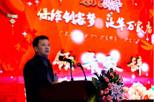 广东泛华南枫刘耀东总督导以“赢猴颂羊—保险创客梦,泛华万家店”为主题,向关心广东泛华南枫成长的集团领导、向支持广东泛华南枫发展的合作伙伴,向为广东泛华南枫发展做出贡献的全体员工,表示崇高的敬意和衷心的感谢!并致以最诚挚的问候和新年的祝福!刘耀东总从各条产品线的经营业绩回顾了2015年公司的发展。各机构、各网点、各团队、穗源公估围绕着总经理室“转型大发展,规模带效益”的经营思路,表现出强大的市场攻击能力,业务明显提升,成本有效控制。后台服务人员以专业、勤奋、有效地支持销售人员在前线作战。2016年新形势,在泛华“全面金融,技术领先”的战略指引下,在打赢“三大战役”的战鼓声中,全面发展建设销售网络,全力推动“万店招商计划”,不断完善泛华门店建设,助力保险创客顺利对接泛华后援平台,成功经营好自己的小微企业,把泛华O2O全面开放到泛华门店,让保险创客一起分享泛华的科技新成果。同时,我们要以寿险经营带动队伍的成长,加强团队建设,发展车童队伍,实现我的客户我服务,让客户能感受到我们在用心服务,不断建设和巩固服务品牌。