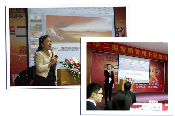 接下来一天的授课中,刘力冲总深入浅出的为学员们讲解泛华O2O战略,对泛华O2O三大战役进行详细的说明,对泛华互联网金融圈进行了详尽的解读。福建省平台总经理徐向阳总在开训仪式上致欢迎词。他谈到自己作为一名营销干部感到无尚的光荣与自豪,这份收获就像发动机一样给自己每天的工作和生活提供源源不断的动力,对未来的影响重要而深远。当年从事寿险事业时加入组训班的一句话对自己是刻骨铭心:“只要有我在,公司一定强!”徐总借助这句话送个各位学员,并与大家共勉!