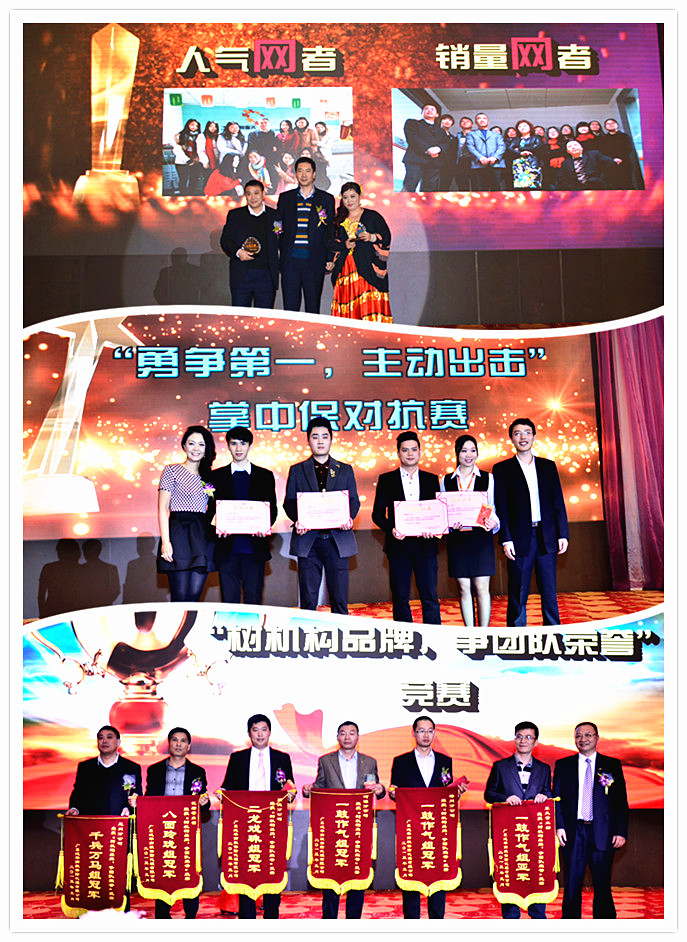 本次晚会首先针对了2014年度大型的营销活动方案颁发奖励,保网模块表现突出的“人气网者”及“销量网者”、“勇争第一,主动出击”掌中保对抗赛、“树品牌,争荣誉颁奖”活动合计29个机构、团队、个人获得了丰厚的奖励。随后,晚会上对在2014年公司发展中作出突出贡献的集体和个人进行了表彰,分别设立了服务明星、全面金融精英、寿险开拓先锋、优秀团队、优秀网点、优秀经理人、先进集体、e互助爱心大使等九个奖项。感谢他们在过去一年中的辛勤付出,并希望公司全体部门、员工在新的一年中以他们为榜样,为泛华南枫的美好明天而共同努力,更创辉煌!