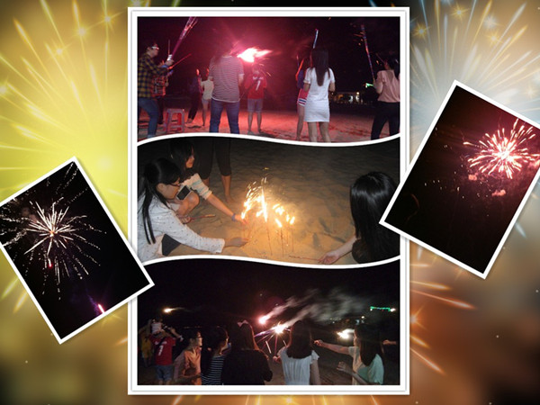 别以为到了夜晚就会安静下来了,吃过丰盛的晚餐,我们聚集在酒店的私人沙滩,玩起了团队游戏。游戏比赛有三组,每组依次比赛吹气球,运气球,角色互换等游戏,充斥眼球的都是笑着的,紧张着的,激动着的人儿。为了团队,他们忘我地投入,紧密地联系在一起,激动地讨论,七嘴八舌出主意,七手八脚保护被风偷走的气球……看那稍胖的同事跑得踉踉跄跄、气喘吁吁;那稍瘦的同事轻巧灵活、左右逢源;那前后身体夹着气球运送的同事紧赶慢赶狼狈不已,没有方向感的同事左右不分在队伍中格外分明,这一幕幕都能让你捧腹大笑,回味无穷。
