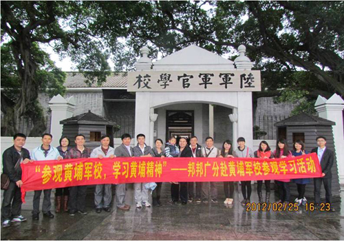 2012年初春,广东泛华南枫邦邦广分的十几位骨干人员在梁江波总经理的带领下,参观了位于广州黄埔区的黄埔军校旧址。当天的凉意习习丝毫无阻邦邦伙伴们的热情,大家意气风发,重温大革命时期的风云变幻,领略一代伟人的丰功伟绩。