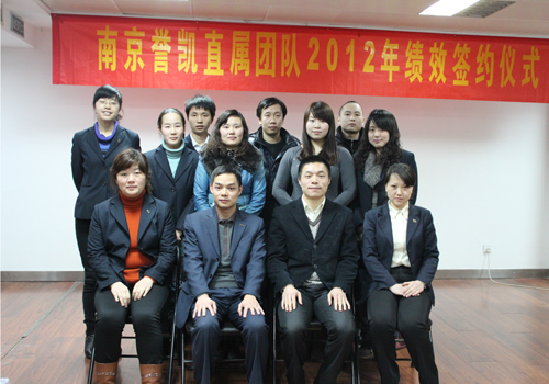 在庄严的声乐中举行了 “南京誉凯直属团队2012年绩效签订仪式”,各团队负责人分别代表本团队与汤总签订了2012年度绩效合约。