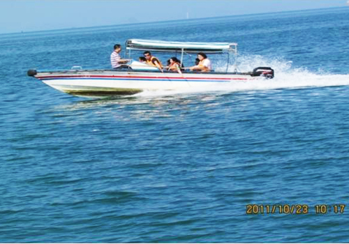 快艇风驰电掣在海天海地里,清爽的海风迎面而来,怎一个“爽”字了得!