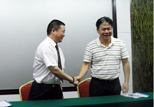 湖南泛华成辉旗总经理(图左)与湖南泰康尹建新总经理(图右)签署分对分合作协议