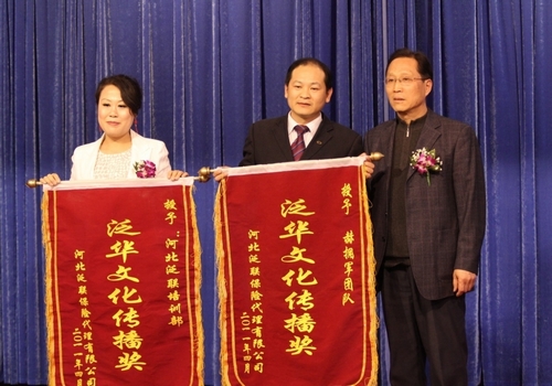 随着长沙高峰会和全国财险2011经营会的胜利召开,泛华财险集团以的优异成绩告别了不同凡响的2010年。而河北泛联的班子成员也在会后载誉归来,给全体将士带回了集团对河北2010年工作和业绩的肯定,一把锋芒四射的倚天剑更是让河北一跃成为全国之首,问鼎霸主宝座,令全体河北泛华人都为之激动不已。就在这欢欣鼓舞的时刻, 2011年4月,河北泛联召开了2010年年度表彰大会,全省53名团队长及各地区绩优代理人、优秀内勤汇聚一堂,共同分享了成功的喜悦,河北泛联总经理刘亚红、副总经理莽力出席了本次会议,此外还荣幸的邀请到河北中介协会会长丰华兵。同时,人保财险、平安财险、天平财险、太平洋财险等主要合作主体[伙伴]也都由主管总带队应邀参加了此次庆典。