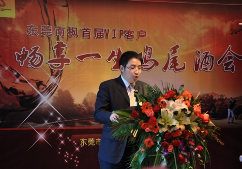 酒会在兀云岗总经理热情洋溢的欢迎致辞中拉开了序幕。东莞南枫的高速发展离不开十几万客户的支持与帮助,为更好的回馈客户,公司曾多次举办客户自驾游等客户联谊活动,而此次针对成功人士的聚会,是一个高端商务交流的平台,能使客户在商务交流时享受到高品质的生活。