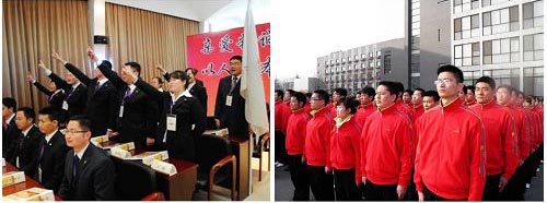 寿险营业集团刘全杰副总裁为二期组训班授旗,最后,班长李长阔接过授旗,并带领全体同学向集团领导庄严宣誓。