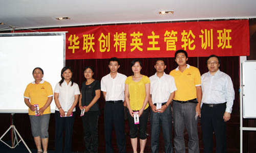 2010年7月8日—9日,江苏泛华在扬州分公司举办了江苏泛华联创主管季度轮训班。本次培训共集合了全省逾90名主管精英,旨在全面提高主管人员的综合业务素质。