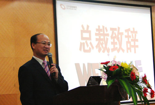 吴荣雄副总裁为学员们做了重要的开训致辞,并为学员阐述了泛华的发展战略及经营规划,使所有学员对泛华的发展有了清晰的认识并坚定了在泛华发展的信心。