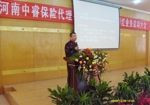 12月的中原大地严冬笼罩,万物沉寂,但寒冷的气息却抵挡不了河南中睿伙伴们火热的士气,虎虎的生气。12月26日,河南中睿省公司总经理室成员、各分公司负责人、业务团队总监及全省几百名业务精英齐聚河南周口,共同迎来了河南中睿“2009年表彰大会暨2010年开门红启动大会”的胜利召开。