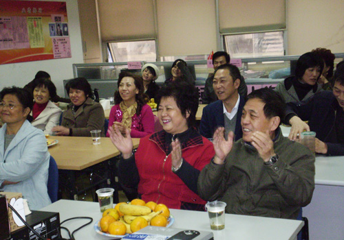 这次激励方案共有40多位业务同仁入围,大家早早地赶到会场,欲睹在电视频幕上机智、公道的“快嘴老娘舅”的“庐山真面目”。下午三时,“老娘舅”与老伴冒雨来到公司,此时大家已经布置好会场等待他们的光临。生活中的“老娘舅”没有一点名人的架子,非常和蔼可亲,与大家一起喝茶、聊天。