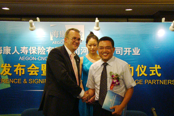 海康人寿总公司博瑞德总经理与河北泛华安信薛凯董事长代表签字