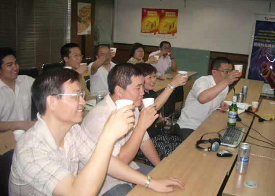 晚上9点,河北泛华安信成功冲刺,以标保570万的成绩超额完成二季度目标,并以有效人力1000人的优异成绩成为了第一个完成二季度目标的泛华机构。随后,河北泛华安信总经理刘力冲、副总经理寇超携全体营销部战士与河北各机构将士召开了全省视频会议并举行庆功大会。泛华集团寿险总裁室发来贺报,向奋战在一线的全体河北将士致以诚挚的问候。
