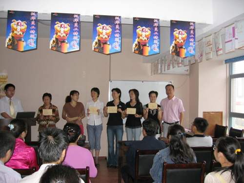 创业团队长与优秀员工合影留念