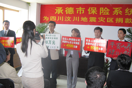 承德保险系统在安信承德分公司(筹)组织抗震捐款活动现场
