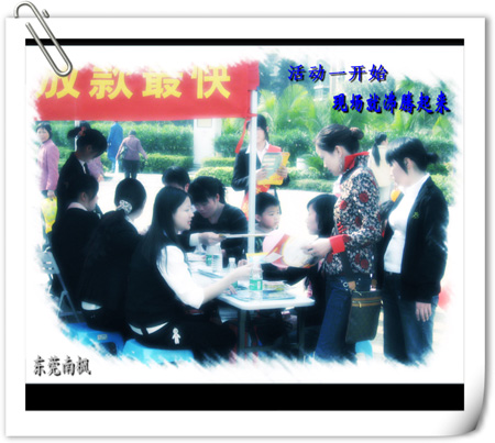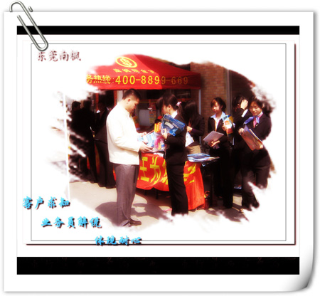 2008年3月2日下午,东莞南枫佳誉保险代理有限公司携手兄弟公司泛华金融服务集团旗下广东南枫财务服务有限公司东莞分公司的员工们来到了东莞城区的高级小区蔚蓝星湖和稻花村,举办了以“新春献真情,服务进小区”为主题的推广活动,为客户提供了全面、便捷的服务。