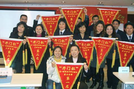 会中,省公司对“开门红”第一阶段的优秀营业网点进行了表彰,并由罗总为进入前十的营业网点代表颁发了锦旗。没有获得锦旗的网点并不灰心,纷纷表示将在以后的战斗中努力,争取得锦旗。